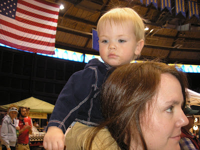 By this time he was tired of being there, but I was trying to watch the fancy dancing. He won out and we left the A. I. C. of MSU Pow-Wow shortly after this. I just thought it was a cute photo.